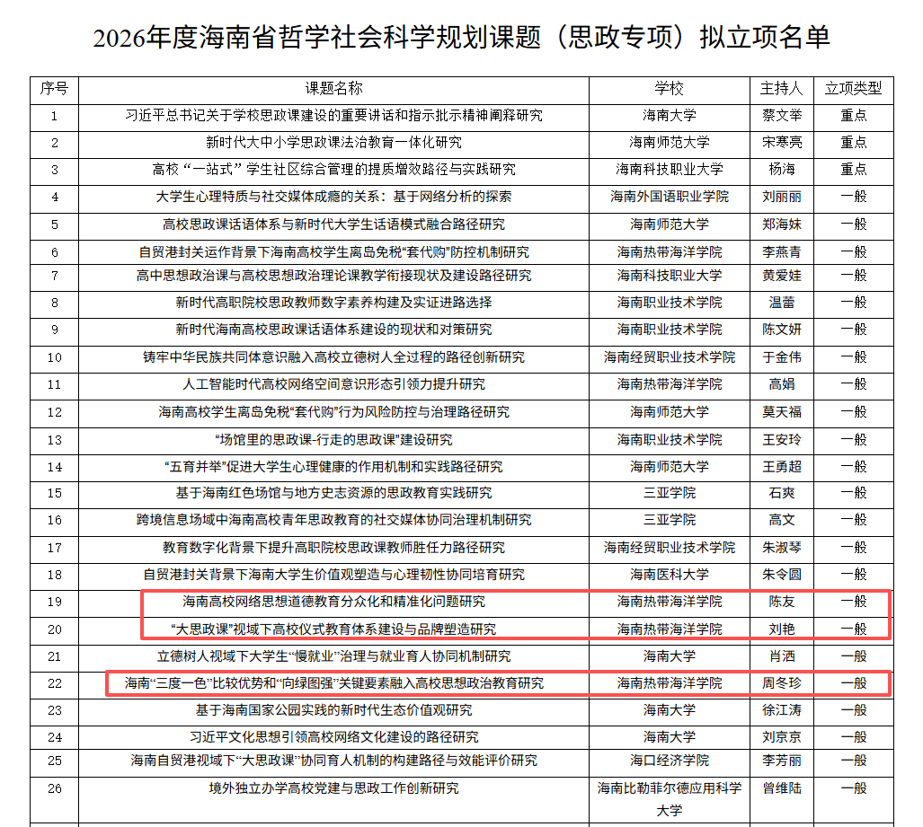 我校3位辅导员获批2026年度海南省哲学社会科学规划...